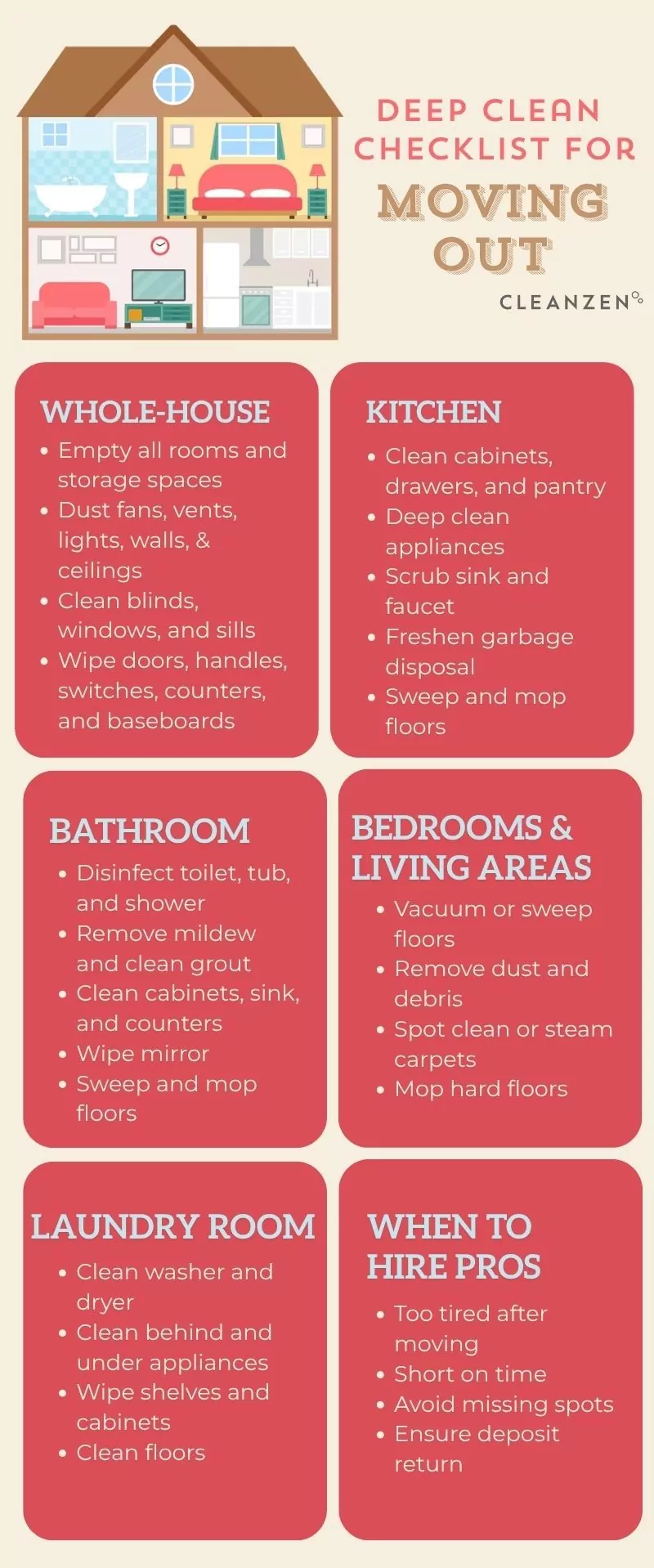 After your house is completely cleared out, follow these steps: