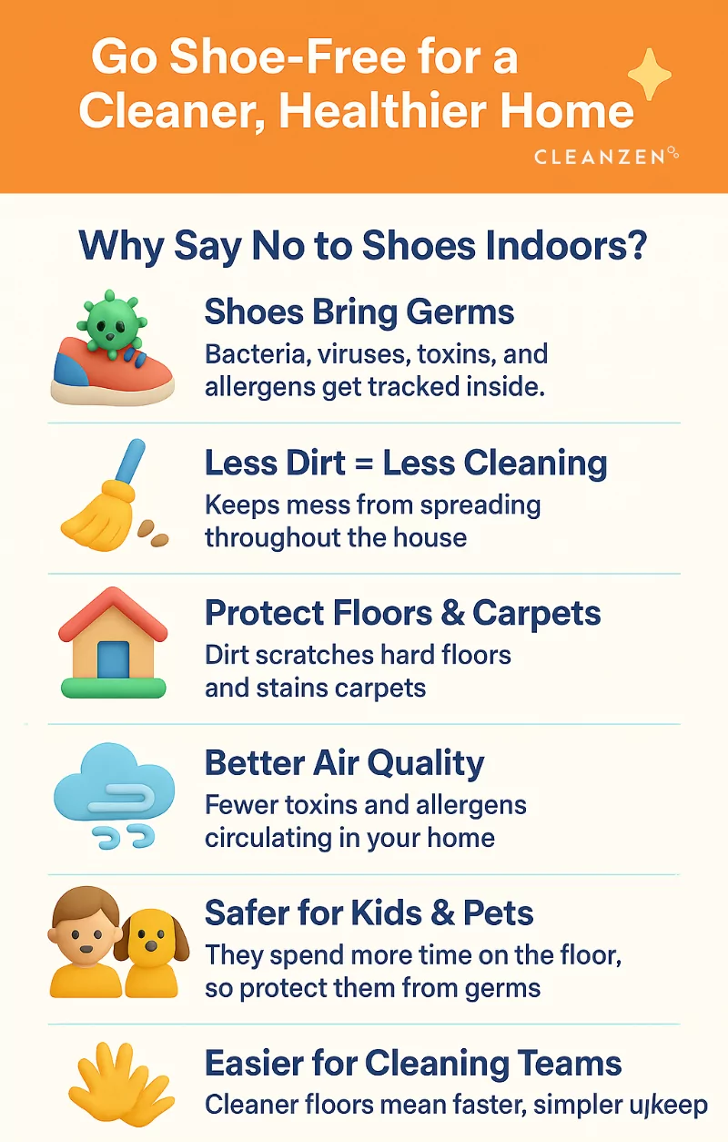 Simple steps like adopting a no-shoes policy at home can help you maintain a cleaner, healthier living space. Even so, your home will still require routine cleaning. Whether you’re challenged to keep your residence or a short-term rental clean, the Cleanzen team can help. To learn more about routine and short-term rental (Airbnb) cleaning and to book your first service, contact us today.