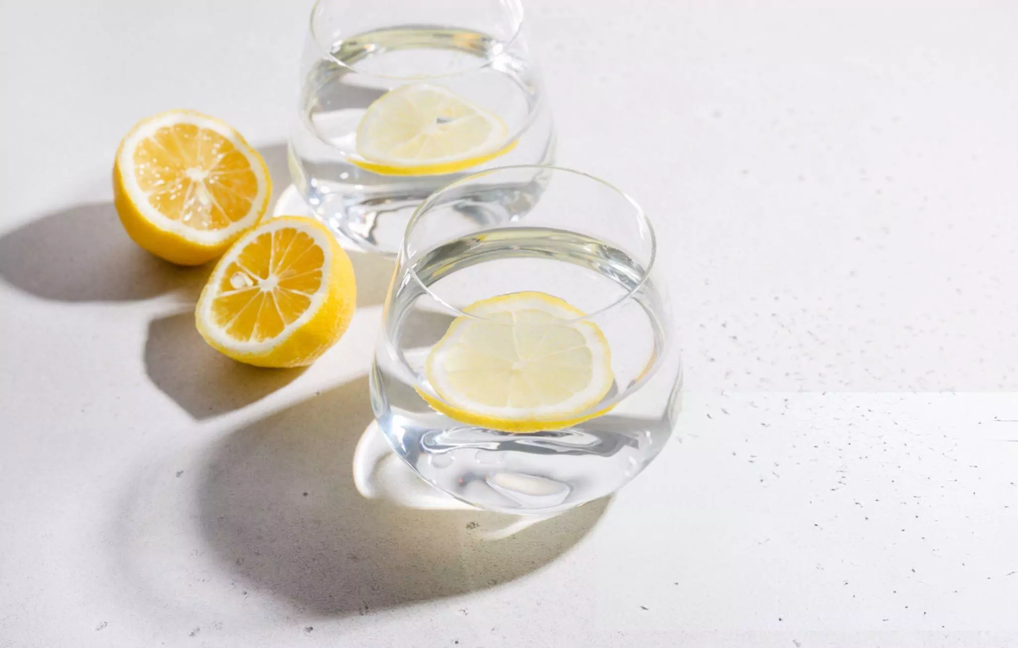 Slice a fresh lemon in half. Dip the open face in a plate covered in a layer of salt. Use the salty lemon to scrub and shine the glassware. Then, rinse the glasses with hot water, and dry them with a clean cloth.