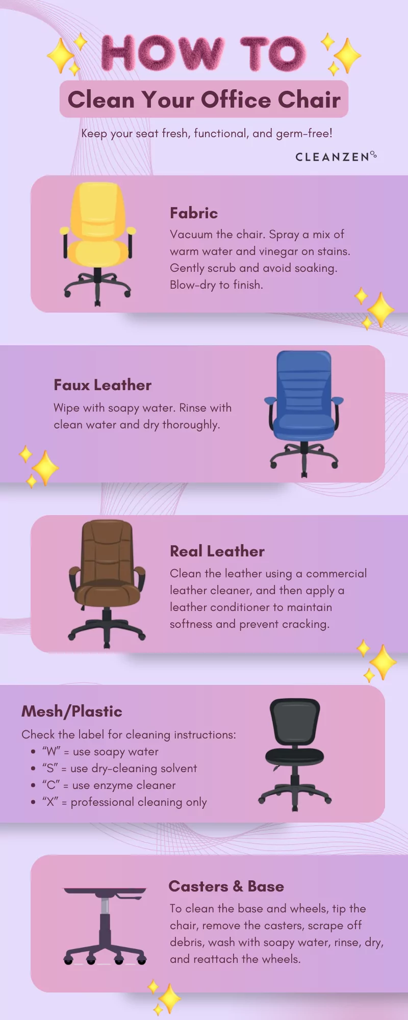 Keeping your office chair clean is important for your hygiene and health. The grime and germs that accumulate on work chairs can result in illness, attract pests and impact indoor air quality. In addition, the cleanliness of your office chair can play a role in its longevity and performance over the years.