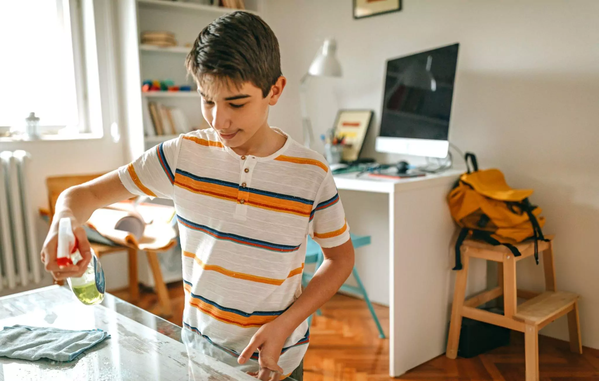 On a weekly basis, your kids should dust the desks, tables and shelves and clean the floor. Remember to deep clean the area at least twice a year when you deep clean the rest of your home.