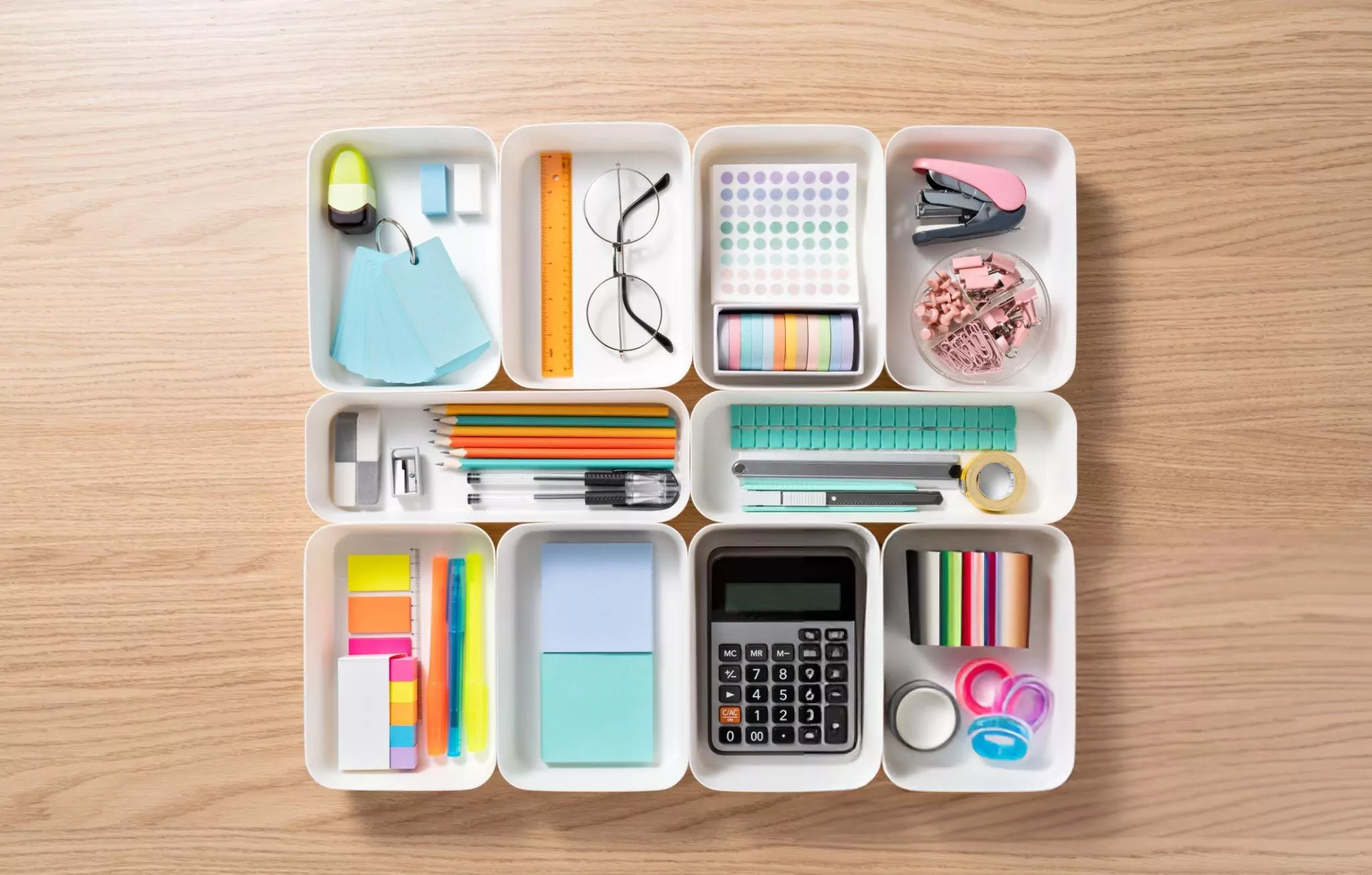 If your children have desks with drawers, a drawer tray organizer works well. Invest in trays for paper, shelves for books and other special features for any other types of supplies your children need.