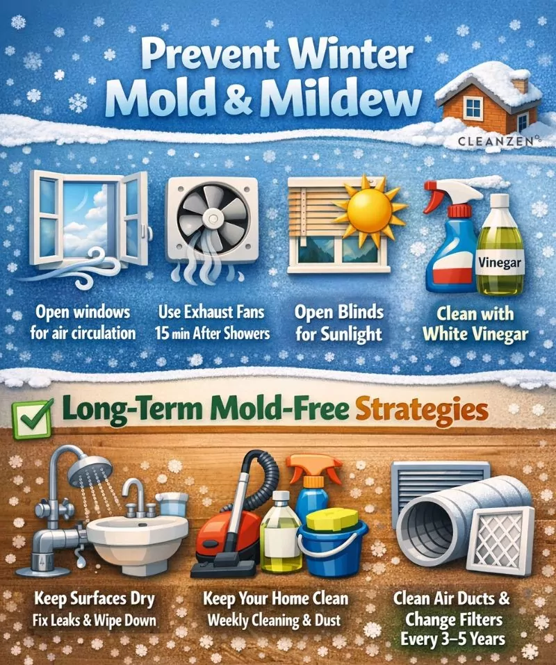 Here’s how to prevent mold and mildew in the winter and throughout the year: