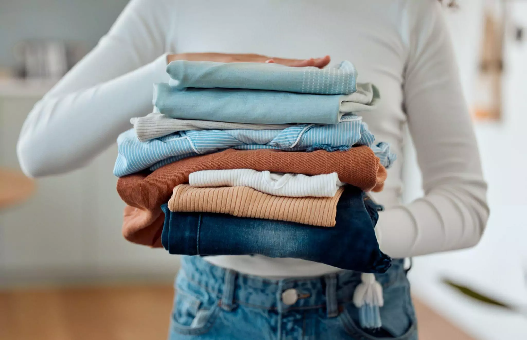 After all, you have to mess up those piles to see each item and make a decision. Using the KonMari folding method, the clothes stand upright. This makes them easier to see and appreciate.